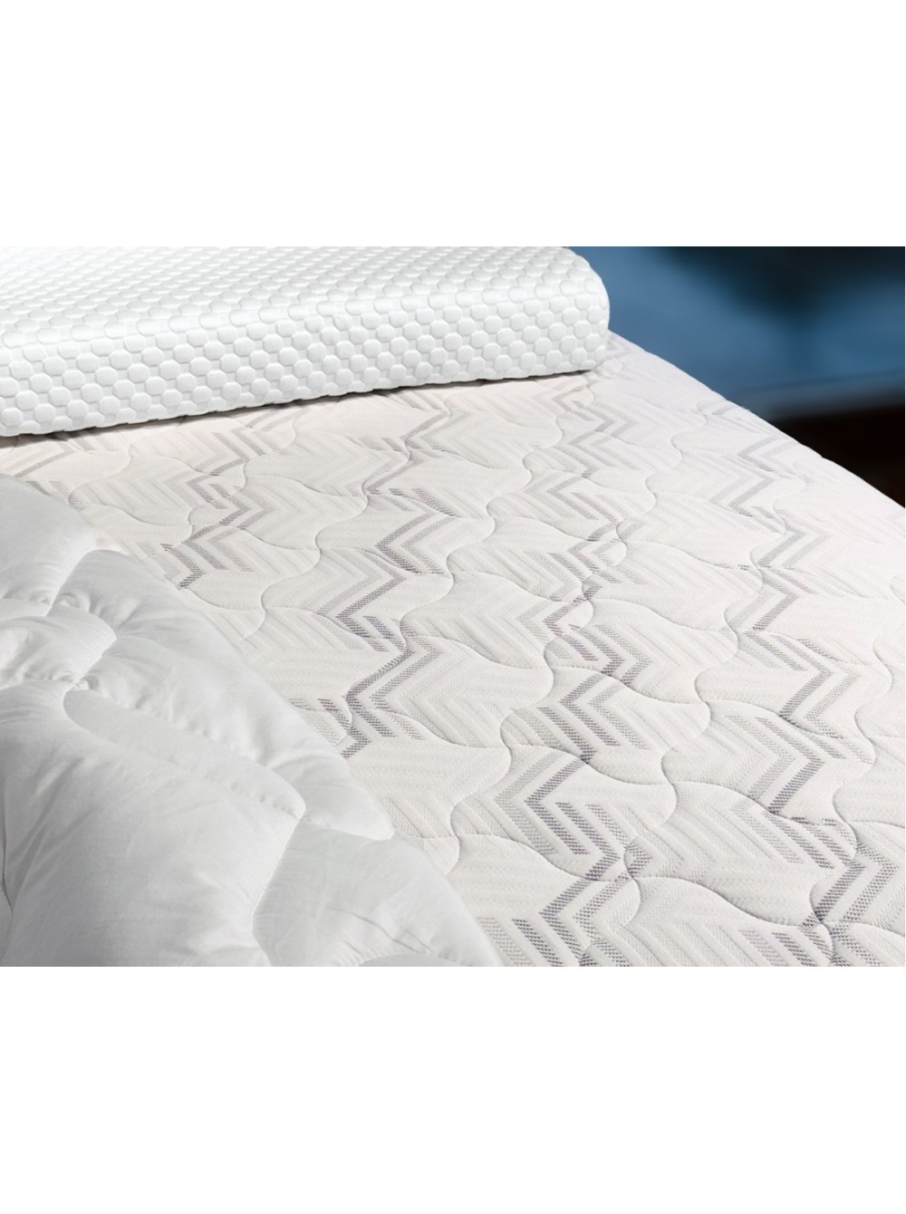 1. Съемный чехол Чехол выполнен из прочной трикотажной ткани, в составе которой не менее 40% натурального хлопка. Ткань простегана по технологии глубокой стежки. Особая техника стёжки позволяет равномерно, без потери формы и объёма, зафиксировать все составляющие чехла. Хлопковые нити в составе ткани обеспечивают здоровый микроклимат во время сна. Чехол имеет разъемную молнию, что позволяет стирать его в домашних условиях.