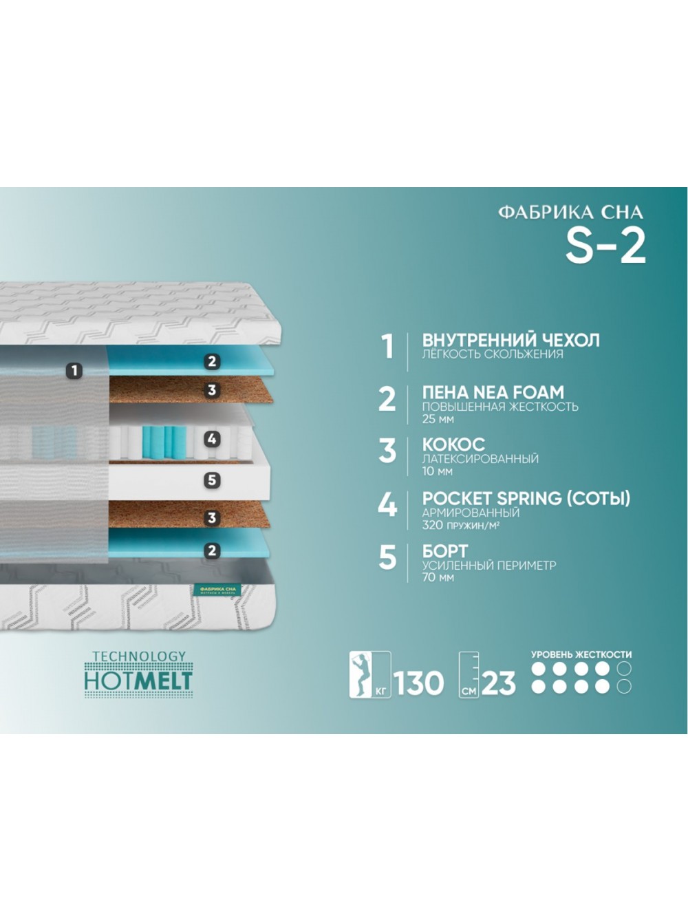 3. Air Foam 2,5см - антиаллергенный, вспененный материал высокой плотности. Air Foam system позволяет повысить комфортность матраса, испытать человеку неповторимые ощущения во время отдыха, улучшить качество его сна.