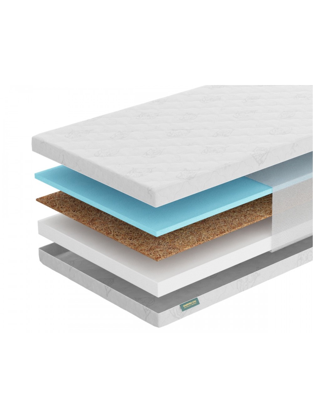 2. Латексированная кокосовая койра (1см) Кокосовая койра - 100% натуральный материал с уникальными свойствами. Койра, скрепленная натуральным латексом, дает объемную упругую воздухопроницаемую структуру. Такой материал используется в моделях, предназначенных для любителей более жесткого и упругого спального места. Естественные вентиляционные качества, эластичность, прочность, упругость, гигиеничность и антиаллергенность, наряду с очень долгим сроком службы, делают этот материал идеальным для наполнения матраса.